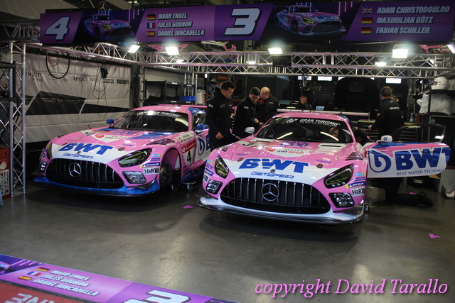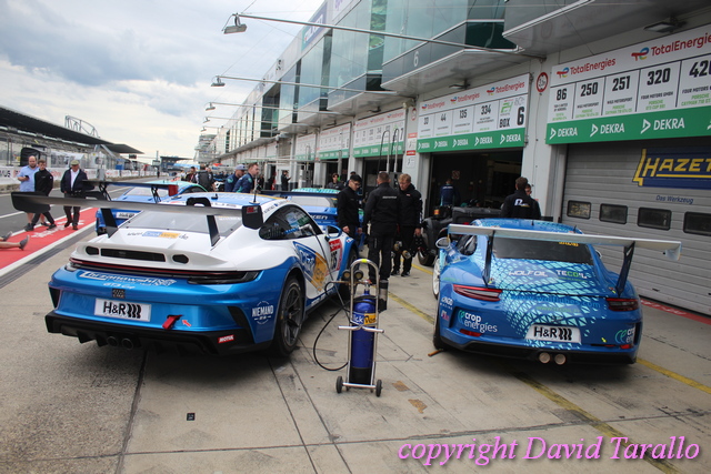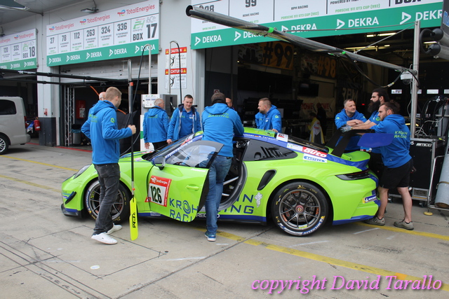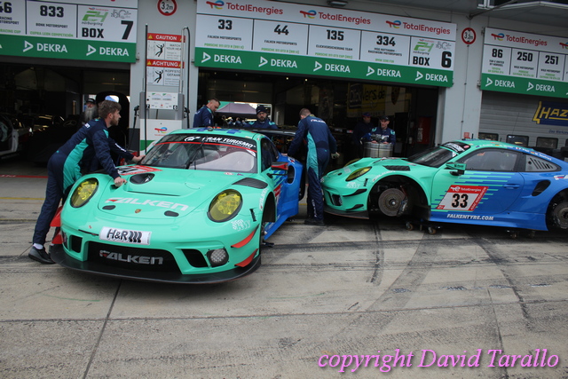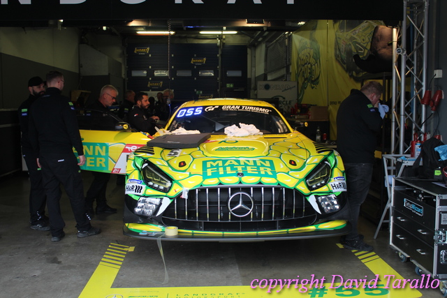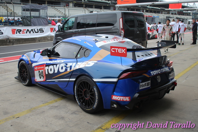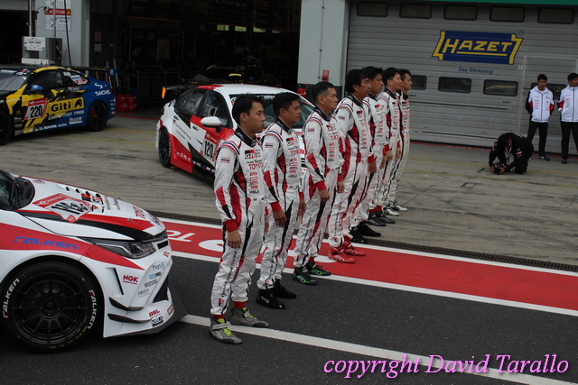 Un giro nel paddock del Nürburgring non è mai qualcosa di banale e in eventi come questo ti capita di incontrare diversa gente del giro, dall’inossidabile Arturo Merzario a Klaus Ludwig, da Jochen Mass a Jim Glickenhaus fino a Olaf Manthey, disposti a parlare e anche a scherzare un po’. Ognuno di loro ha più che validi motivi per essere lì…! Il mercoledì sera si possono osservare nella pitlane varie evoluzioni: dalle prove di cambio gomme agli ultimi aggiustamenti, dalle foto promozionali per brochure e siti (divertente la sessione del Toyota Gazoo Thailand) alla sistemazione dei box, pieni come uova, visto che ogni garage ospita svariate auto, non sempre dello stesso team.