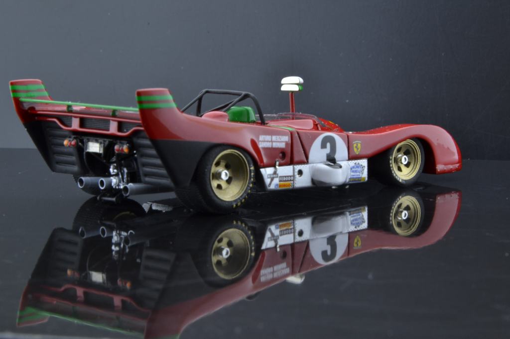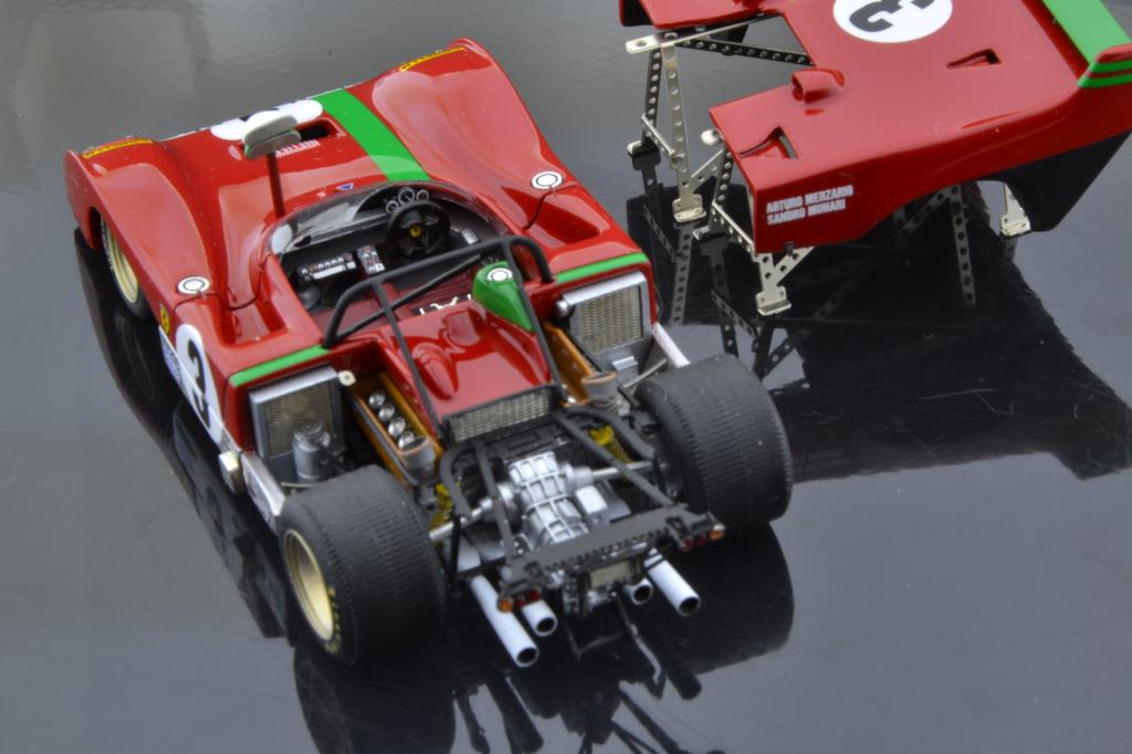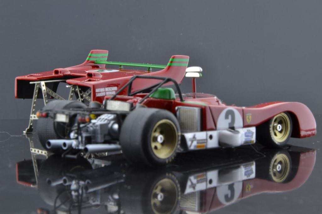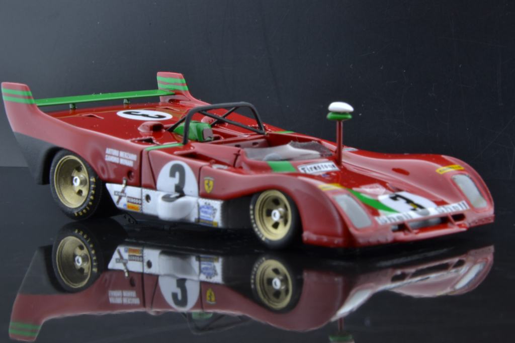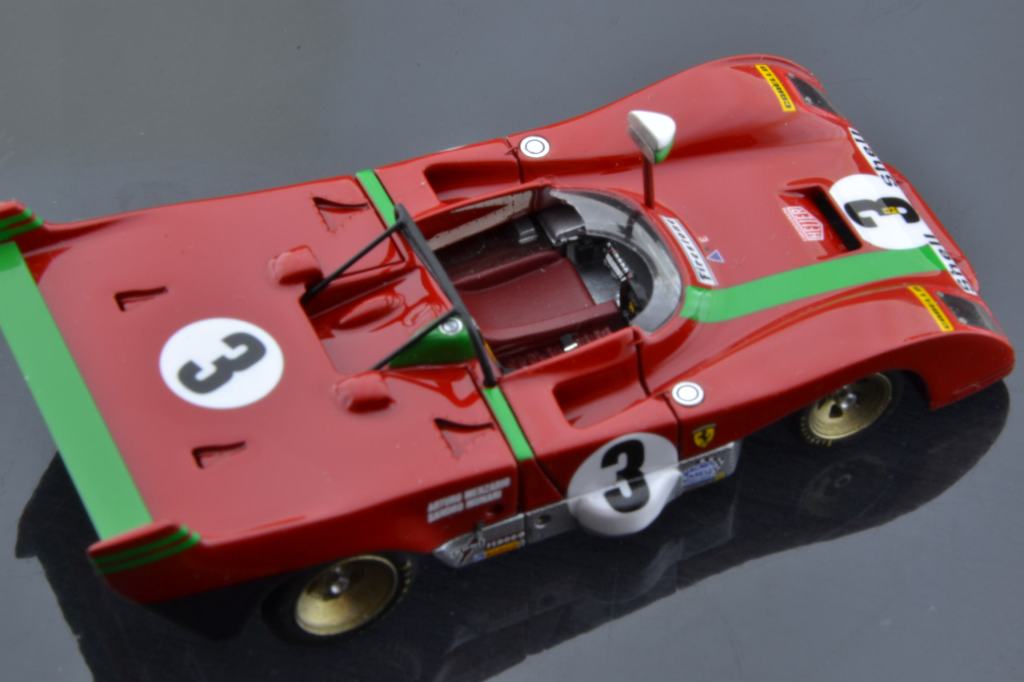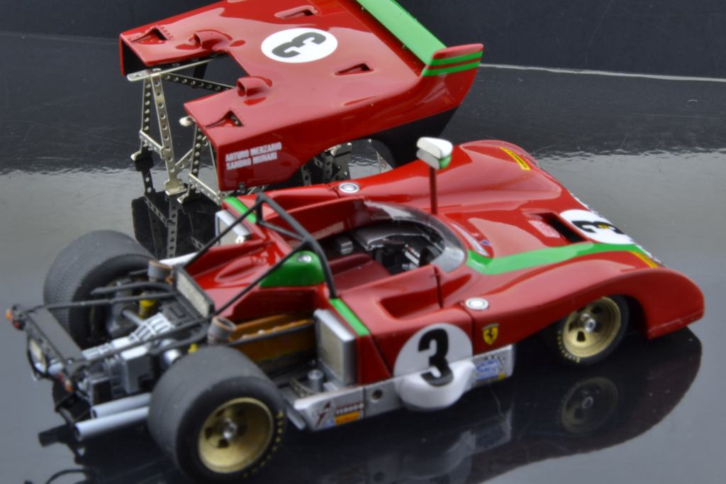 I montaggi di Gualtiero Negri riscuotono puntualmente in PLIT un notevole successo di visualizzazioni, e a ragione: si tratta di realizzazioni equilibrate e ragionevoli, lontane da certe malate esagerazioni di presunti artisti italiani, belgi, francesi o portoghesi (mi verrebbero in mente tre o quattro nomi ma lascio perdere perché stamani mi sento buono). Stavolta pubblichiamo una gallery di un montaggio basato sul kit Tecnomodel della Ferrari 312 PB vittoriosa alla Targa Florio 1972 con Sandro Munari e Arturo Merzario. Il modello, apribile, lascia in vista la riproduzione completa della meccanica al posteriore, con motore, cambio, sospensioni e tutto il resto.