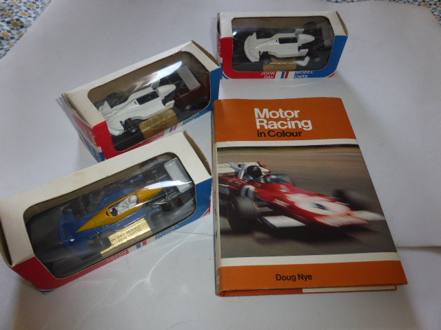 Forse altrove in questo sito scrissi che il libro di Jess Pourret sulle Ferrari 250 GT va assaporato con una GTO di AMR davanti. A ogni volume corrispondono determinati modelli, noi collezionisti siamo fortunati. Accanto a questo di Nye metterei le vituperate March 761 della John Day, di quelle in diecast, vendute solo montate. L’abbinamento può avere un senso. Saponette colorate e giacche con le toppe; moquette in bagno e piatti con steak ricoperto di crema di whisky fino all’orlo. Le liste dattiloscritte di Brian Harvey e l’adesivo del BRDC.