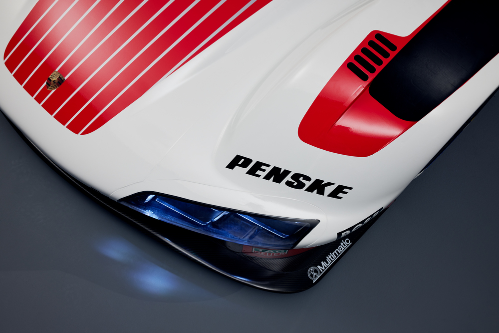 Nel rispetto del regolamento LMDh, la Porsche 963 è basata su un telaio di categoria LMP2. Questo telaio di nuova concezione è fornito dall’azienda canadese high-tech Multimatic. Bosch, Williams Advanced Engineering e Xtrac forniscono i componenti ibridi standard. Il cuore del gruppo propulsore è costituito da un V8 biturbo da 4,6 litri. Il motore deriva dalla 918 Spyder. Il suo DNA risale alla RS Spyder LMP2, con cui Porsche e il Team Penske hanno ottenuto numerose vittorie tra il 2005 e il 2008. Dal punto di vista del design, la Porsche 963 si ispira alle 956 e 962 degli anni Ottanta. Una striscia luminosa continua nella parte posteriore richiama l’elemento distintivo dell’ultima generazione 992 della 911. La livrea bianco-rosso-nera è un omaggio alle auto da corsa di successo prodotte da Porsche. Prosegue anche un’altra tradizione: la nuova Porsche 963 sarà disponibile per i clienti fin dal primo anno di gare. I primi team renderanno noto il loro programma già nei prossimi giorni.