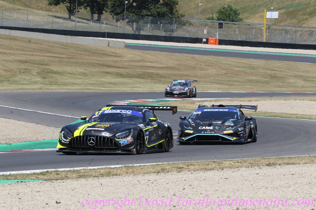 Alle spalle di due equipaggi del VSR andranno a schierarsi la Mercedes AMG GT3 (Antonelli Motorsport) di Scholze/Galbiati (5’24″270) e l’Honda NSX GT3 (Nova Race) di Moncini/Guidetti/Cabezas (5’24″955). Dalla terza fila scatteranno la Lamborghini Huracan GT3 (Imperiale Racing) di Balthasar/Ponzio/Roe (5’25″216) e la seconda AMG GT3 dell’Antonelli Motorsport di Pesce/Rappange (5’26″117), precedendo la terza Huracan GT3 del VSR di Cola/Moulin (5’26″268) e la seconda Huracan GT3 dell’Imperiale Racing affidata a Llarena/Pijl/Guzman (5’26″660), mentre in quinta linea andranno a schierarsi la seconda Honda NSX della Nova Race Magnoni/Di Fabio/Lippi (5’28″184) e la prima vettura della classe GT Cup, la Ferrari 488 Challenge (AF Corse) di Cressoni/Pulcini (5’38″406). Nella classe riservata alle vetture in configurazione monomarca, con il secondo tempo (5’39″345) si sono classificati Donno/Risitano/Menichini (Ferrari 488 Challenge-Best Lap) davanti alla Porsche 991 GT3 Cup Gen II (Krypton Motorsport) di Gattuso/Mainetti/Riva (5’39″673) e alle due 488 Challenge (SR&R) di Bontempelli/La Mazza/Demarchi (5’42″164) e Buttarelli/Cossu/Bacci.