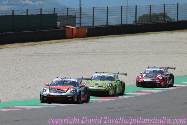 Tornando alla top-10 assoluta, dietro a Caglioni-Laurini-Quaresmini-Malucelli-Masters-Cerqui, al settimo posto si è classificato un combattivo Giorgio Amati (Ghinzani Arco Motorsport – Centri Porsche Milano), ottavo è Alessandro Giardelli (Ebimotors – Centro Porsche Varese), nono Andrea Fontana (Bonaldi Motorsport – Centro Porsche Bergamo) e decimo il 17enne rookie lituano Kajus Siksnelis (Dinamic Motorpsort – Centro Porsche Bologna), il più giovane del lotto. Nel weekend del Mugello è stato protagonista anche Jorge Lorenzo, all’esordio sulle quattro ruote sul circuito toscano che tante volte ha affrontato nel Motomondiale. Pur non avendo effettuato test, il pluricampione della MotoGP ora pilota del Team Q8 Hi Perform è riuscito a migliorare i propri limiti di due secondi fra libere e qualifiche e ha sfiorato la zona punti in gara-1 sabato, mentre in gara-2 è tornato a muovere la propria classifica grazie al miglior risultato stagionale: 11°.
