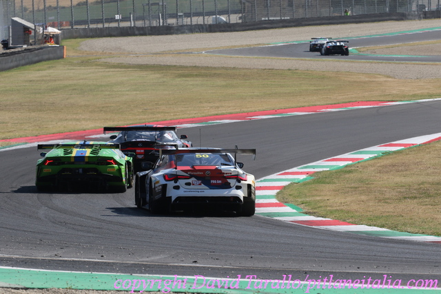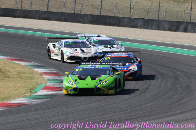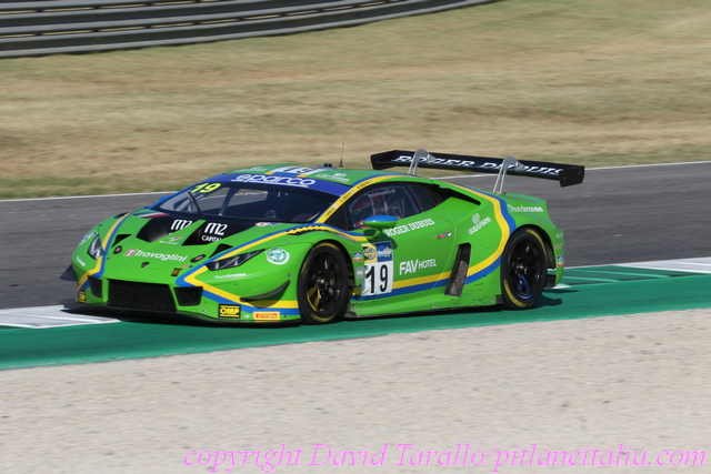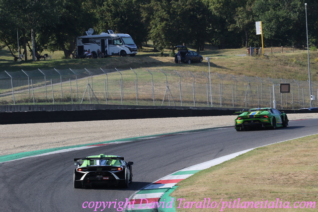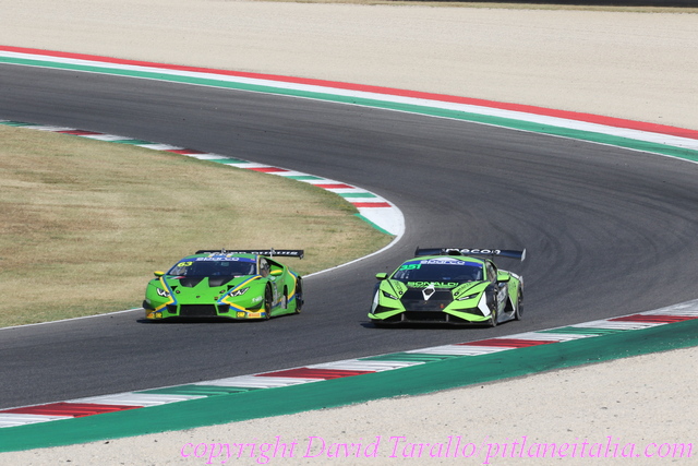Nel secondo stint Liberati ha incrementato ancora su Michelotto, così come Beretta che, nel terzo stint, ha portato a quasi 40 secondi il vantaggio su Basz, chiudendo la gara nell’ordine davanti ad un’altra Huracan GT3, quella di Llarena/Pijl/Guzman. L’equipaggio dell’Imperiale Racing ha disputato una gara molto accorta con Pijl e Llarena bravi nei rispettivi stint a tenersi a in zona podio permettendo a Guzman di chiudere sul terzo gradino davanti a Scholze/Galbiati (Antonelli Motorsport), primi della GT3 PRO-AM, e Comandini/Fascicolo/Nilsson (BMW M4 GT3). I portacolori di BMW Italia-Ceccato Racing Team hanno disputato una gara tutta in rimonta, dopo essere partiti dall’ultima fila dello schieramento, grazie ad un primo stint velocissimo del giovane pilota svedese, a cui hanno fatto seguito i due stint di Fascicolo e Comandini che hanno permesso loro la conquista del secondo posto nella GT3 AM.