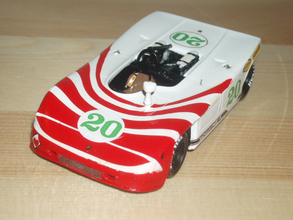 Verniciata con la classica bomboletta Duplicolor, la mia Porsche 908/3 numero 20 ebbe una carriera abbastanza interessante. Partecipò fra l’altro alla mostra di modellismo che si tenne da Luciano Rocchi nell’aprile del 1987, per poi finire, nel luglio del 2007, nella collezione di neanche ricordo chi, dopo una vendita su eBay. Di questa 908/3 si sono perse quindi le tracce e restano per fortuna diverse foto, fra cui un paio scattate in occasione della mostra di Rocchi.