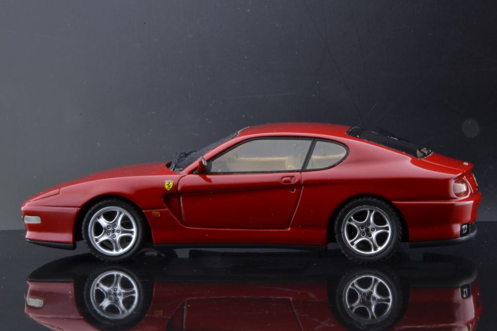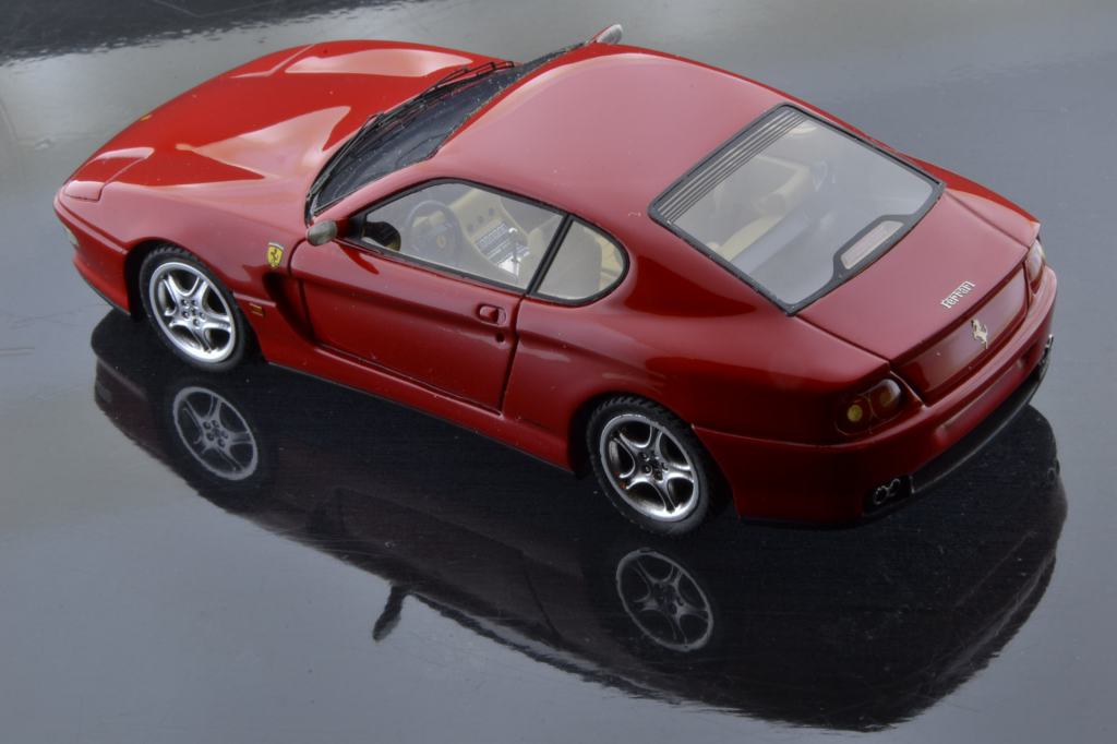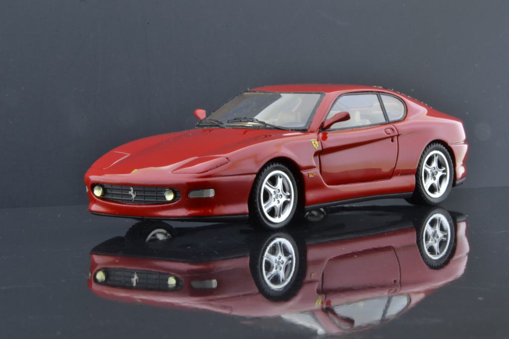 Presentata al Salone di Ginevra del 1998, la nuova versione della Ferrari 456 GT corrispondeva agli occhi di molti al vecchio modello. In realtà questa vettura, denominata 456M GT (“M” per modificata”) racchiudeva moltissime migliorie non solo a livello aerodinamico ed estetico ma anche telaistico, con nuove sospensioni gestite elettronicamente. Come motorizzazione, la 456M conservava il 12 cilindri da 5474cc e 442cv a 6250 giri al minuto. Presentiamo un montaggio di Gualtiero Negri eseguito partendo dal classico kit BBR 1:43 in resina.