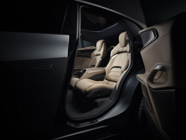 Le forme avvolgenti che convergono verso il centro abbracciano gli occupanti e, attraverso il dialogo tra volumetrie sellate e aree tecniche funzionali, esaltano il concetto di doppio cockpit all’anteriore e al posteriore. La zona centrale della plancia ospita i comandi legati al comfort, controllati tramite un’interfaccia rotativa a scomparsa presente anche nella zona posteriore.