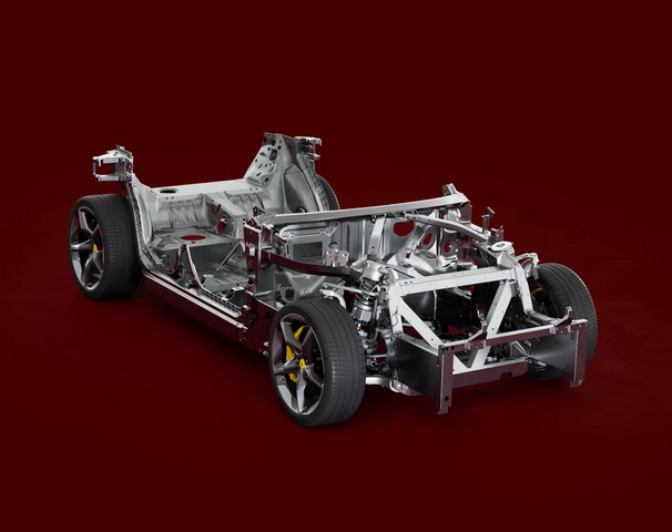 Il telaio così progettato ha un peso ridotto rispetto a quello delle altre vetture a quattro posti della Casa di Maranello, nonostante le sue dimensioni siano maggiori. Il miglioramento di rigidezza torsionale (+30%) e flessionale (+25%) sono stati fondamentali per migliorare il livello di assorbimento vibrazionale e acustico delle asperità stradali, oltre a donare una sensazione di guida solida e stabile.