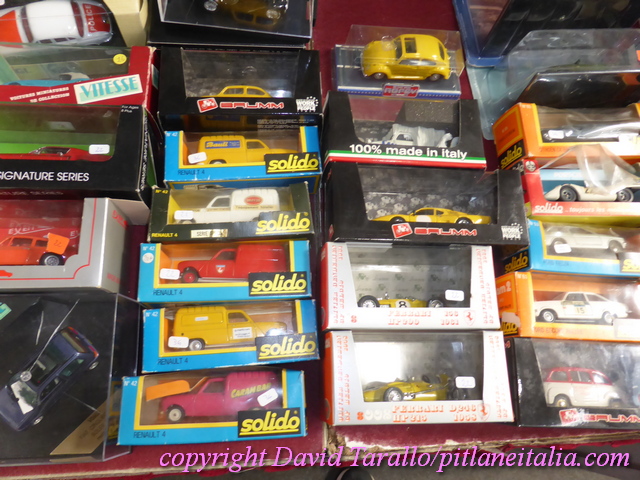 L’Hobby Model Expo non è certo l’occasione migliore per trovare modelli obsoleti o vecchi speciali, tuttavia l’attuale edizione, che si concluderà domenica 25 settembre, permette agli appassionati di miniature del passato di scovare qualche rara perla. Già L’Aquilone presenta una piccola raccolta di modelli speciali (soprattutto Provence Moulage ma anche Starter, Esdo, Jemmpy e così via) provenienti da una raccolta di un collezionista di lungo corso. Una prova in più del fatto che in questi ultimi mesi si stanno “liberando” diverse collezioni di un certo livello, che stanno raggiungendo rivenditori situati per lo più nell’area lombardo-piemontese. Ci saranno sicuramenti sviluppi in un prossimo futuro. Quanto agli obsoleti, belli alcuni Solido, fra cui una serie di Renault 4 Fourgonnette e diversi Pilen in condizioni perfette, probabilmente mai usciti dalla scatola. Lo stesso venditore di Pilen proponeva una serie di interessantissime Jaguar di Smallwheels, factory built in 1:24: purtroppo questi modelli, piuttosto fragili, presentavano diversi piccoli ma fastidiosi danni qua e là: scrostature, pezzi mancanti, ruote a raggi parzialmente danneggiate, ammaccature nel metallo bianco. Sicuramente questi modelli erano perfetti al momento dell’acquisto dalla collezione privata da cui essi provengono. Stesso discorso per alcuni Western Models in 1:43, fra cui una Ferrari Testarossa. In una delle foto sotto potrete vedere anche una Porsche 936 di MRE…!