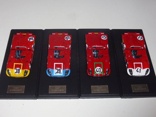 Fast by Ciemme43 sta ricostruendo tutta la carriera dell’Alfa Romeo 33/3 e 33TT3, aggiungendo a versioni già realizzate in passato a vetture inedite o viste raramente. E’ stata completata di recente la serie relativa alla 1000km di Monza 1970, composta dalle auto di Galli/Stommelen (n°38), Hezemans/Gregory (n°39), Facetti/Zeccoli (n°40) e De Adamich/Courage (n°41).