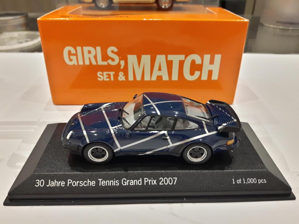 La prima a proporre un modellino dedicato al Porsche Tennis Grand Prix è stata Minichamps, che in occasione del 30° anniversario del PTGP nel 2007, ha riprodotto una Porsche 930 Turbo di colore blu con strisce argento che, va evidenziato, non è quella vinta dalla tennista belga Justine Henin (una 997 Turbo Cabriolet di colore giallo).