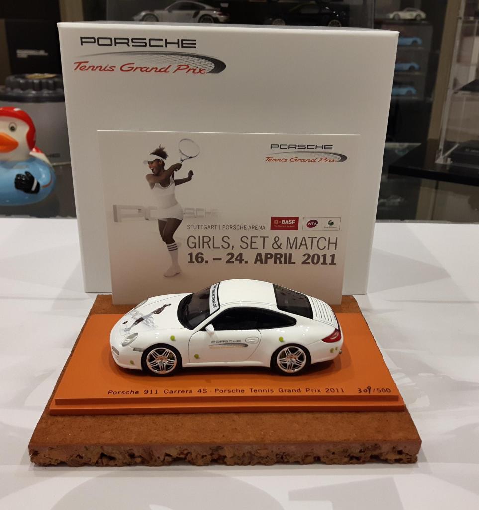 Nel 2009 Schuco ha riprodotto in serie limitata di 1000 pezzi la bianca Boxster S (987) vinta dalla tennista russa Svetlana Kuznetsova in occasione del Porsche Tennis Grand Prix 2009, seguita nel 2011 da una bellissima Porsche 997 Carrera 4S di Spark, di colore bianco con decorazioni e loghi tampografati, venduta in un cofanetto con cards pubblicitarie e con una base a simulare il terreno di gioco del Porsche Arena. Anche questa volta, però il modello non è esattamente quello vinto dalla tennista tedesca Julia Görges, una Porsche 997 Carrera GTS Cabriolet di colore argento.