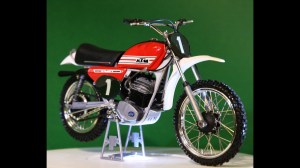 Per primo arrivò un bellissimo kit in scala 1:9 firmato Protar, riproducente la versione da cross del 250, campione del mondo motocross classe 250 nel 1974 col colonnello dell’Armata Rossa Gennadij Moiseev (che di mondiali col 250 ne vinse tre in quegli anni), ed era il classico modello Protar bellissimo, fedele, nobilitato da molte parti funzionali, ma anche abbastanza ostico da montare per i più, e in un certo modo guastato da una qualità della plastica abbastanza inadeguata, che tendeva a fare reagire malamente le parti a contatto con la gomma.