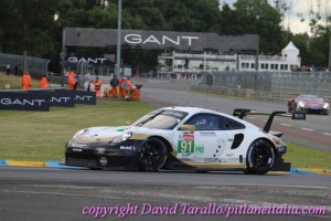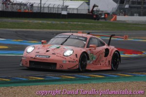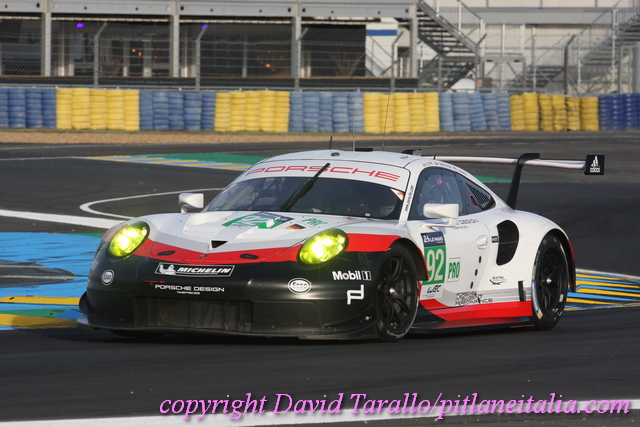 In occasione del 70° anniversario del marchio, infatti, due 911 RSR sfoggiavano un look storico. La numero 91, con la mitica livrea Rothmans delle 956 e 962C, dominò le qualifiche. Gianmaria Bruni stabilì un nuovo record per le GTE a Le Mans con un tempo di 3’47”504. La vettura numero 92 con livrea Pink Pig dominò la gara. Kévin Estre, Michael Christensen e Laurens Vanthoor tennero un passo inesorabile ed ebbero anche la fortuna dalla loro, vincendo la classe con un giro di vantaggio sulla vettura gemella di Gianmaria Bruni, Richard Lietz e Frédéric Makowiecki.