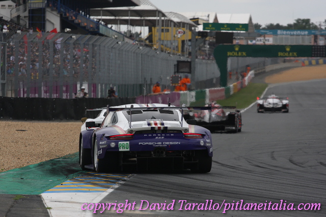 In occasione del 70° anniversario del marchio, infatti, due 911 RSR sfoggiavano un look storico. La numero 91, con la mitica livrea Rothmans delle 956 e 962C, dominò le qualifiche. Gianmaria Bruni stabilì un nuovo record per le GTE a Le Mans con un tempo di 3’47”504. La vettura numero 92 con livrea Pink Pig dominò la gara. Kévin Estre, Michael Christensen e Laurens Vanthoor tennero un passo inesorabile ed ebbero anche la fortuna dalla loro, vincendo la classe con un giro di vantaggio sulla vettura gemella di Gianmaria Bruni, Richard Lietz e Frédéric Makowiecki.