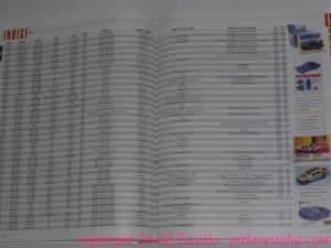 Al termine del catalogo si prendono in esame alcuni modelli prodotti all’estero con stampi originali italiani e anche i primi diecast spagnoli 1:25 di Nacoral e Guisval, che Bendinelli – a ragione – ha ritenuto opportuno di aggiungere data la loro contemporaneità ai modelli nostrani. E non è finita qui: da pagina 390 a 400 il collezionista trova una panoramica di tutti i vari tipi di scatola utilizzata. L’indice, che occupa oltre settanta pagine, è di per sé un capolavoro di acribia, con l’indicazione delle referenze, degli anni di produzione, dei colori e delle decorazioni e del tipo di scatola utilizzato per ogni determinata variante. Per ogni modello indicizzato vengono riportati il numero progressivo assegnatogli nel volume e la pagina in cui ne compare la foto.