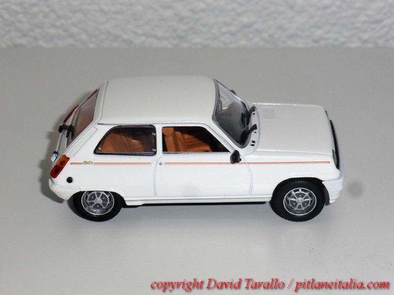 Fin da quando le ho viste, ho sempre trovato in queste R5 di Norev 1:43 qualcosa che non quadra. La R5 non è un’auto facile da riprodurre. Ci riuscì benissimo Solido negli anni settanta, ma da allora si è registrata una bella serie di mezzi fallimenti. La R5 di Norev è troppo “legnosa”, si è persa quell’armonia che contraddistingue la vettura reale. Volendo andare più nello specifico, si potrebbe osservare come i finestrini laterali siano troppo piccoli (specie quelli anteriori) o come la linea del parafango non sia abbastanza spiovente. Manca qualcosa nella morbidezza delle forme, e si è spezzato quell’equilibrio – difficile da catturare, va riconosciuto – fra angoli e smussature che rende inconfondibile l’aspetto della R5.