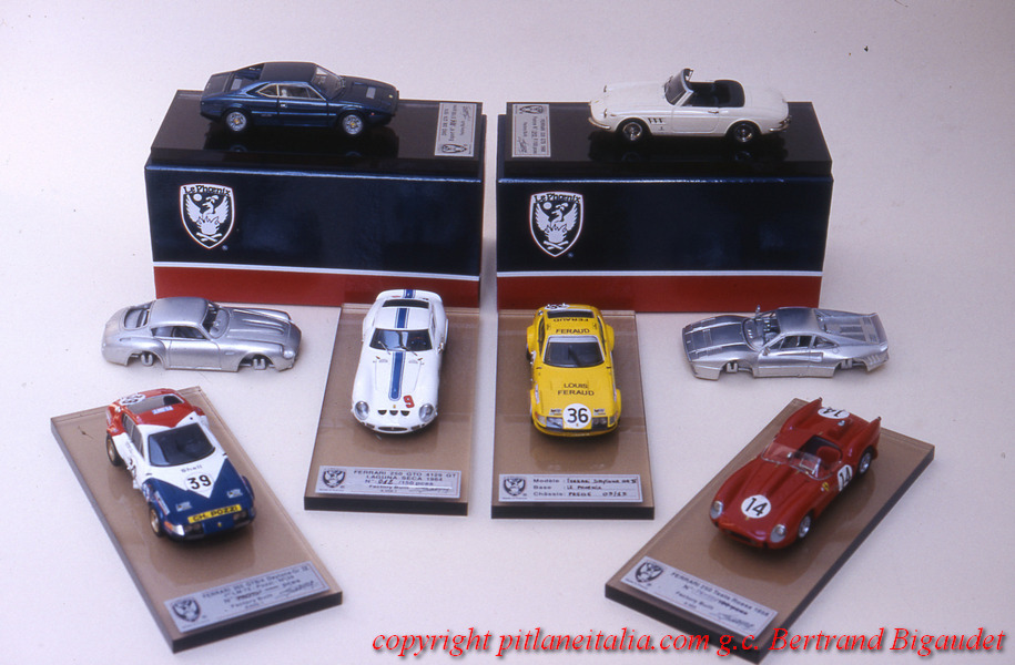 Nel 2012 usciva il catalogo ragionato della produzione di modelli montati Le Phoenix, a cura del sottoscritto e di Bertrand Bigaudet. Quell’edizione, in serie limitata e numerata, andò a ruba, e ancora c’è chi me ne chiede una copia a distanza di tanti anni. Forse sarebbe anche giunta l’ora di farne una seconda edizione, magari aggiungendo la lista dei kit che all’epoca era stata omessa. Nel frattempo, inoltre, si sono aggiunti ulteriori dati al repertorio delle serie montate e le foto in archivio sono così tante che il nuovo quaderno potrebbe avere un apparato iconografico del tutto nuovo. La boutique ACB (Auto Concept Bigaudet) ha segnato un’epoca, prima come atelier di montaggio modelli speciali e vendita di giocattoli d’epoca, poi anche come sede commerciale di Le Phoenix, il marchio fondato per ridare ossigeno a Ruf dopo la rottura con Lang.
