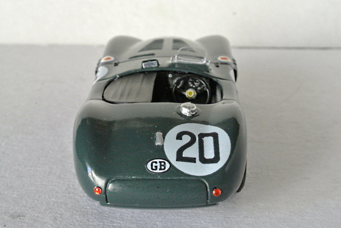 Ecco una Jaguar C type derivata dal n. 6 della collana 100 anni di auto da corsa DeA del 2003. La versione è rimasta quella originale, ma il modello è stato rivisto integralmente. In particolare sono state limate via le cinghie che erano laterali come nella configurazione pre-gara 8 e come nel John Day. Io volevo la versione gara, quindi ho dovuto spostarle sul cofano, ma per farlo ho dovuto eliminare anche gli sfoghi, che pertanto sono stati rifatti in lamierino di ottone. Ho aggiunto anche le feritoie sottostanti e una miriade di altri dettagli. Più studiavo foto e filmati più veniva fuori qualcosa di nuovo da fare… comunque è la notissima vincitrice della 24 ore di Le Mans del 1951 con Peter Whitehead e Peter Walker. Aggiungo una foto dell quattro C type che elaborai contemporaneamente, questa, una Top model e due John Day. E’ fuori tema, ma in realtà per me l’origine dei modelli è indifferente.