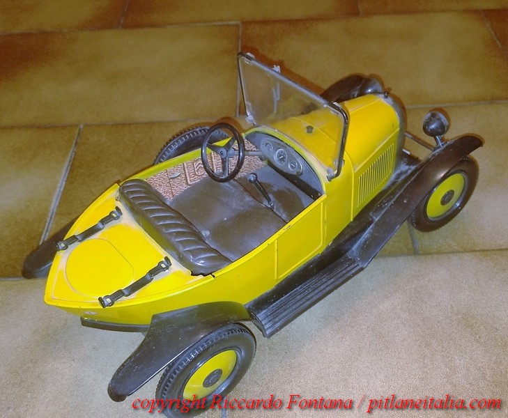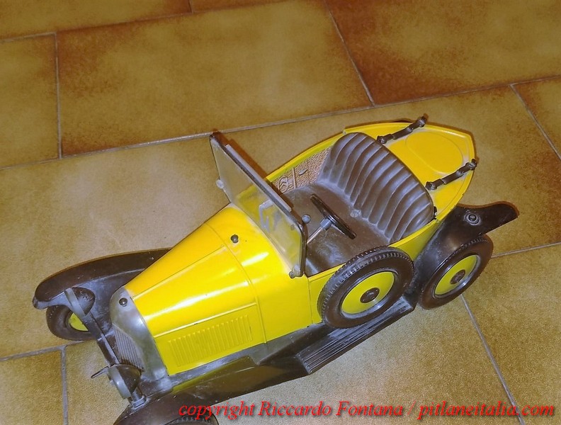 Aveva un corpo vettura e dei cerchi in latta verniciata proprio come i Jouets Citroën, ma contrariamente a questi ultimi aveva i parafanghi e molti dettagli in plastica: i decenni, d’altronde, non trascorrono mai invano…