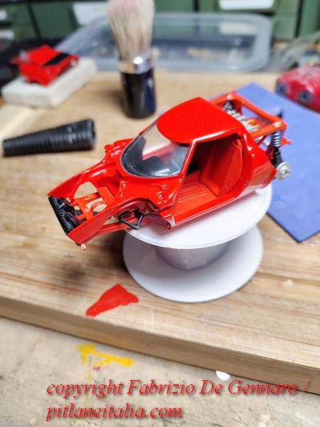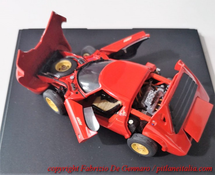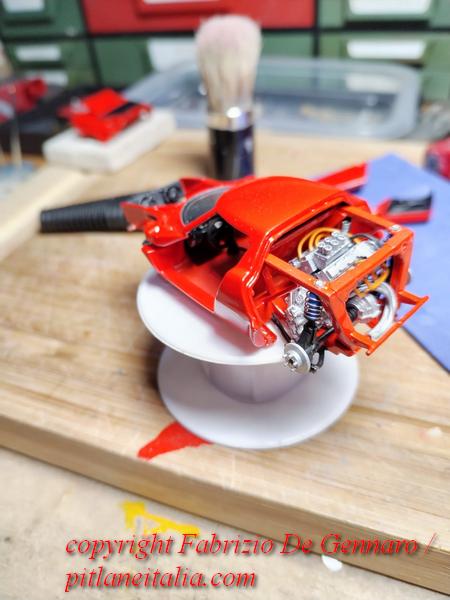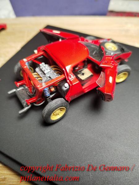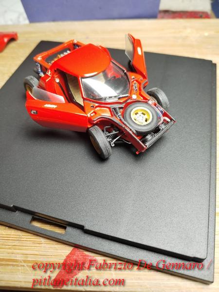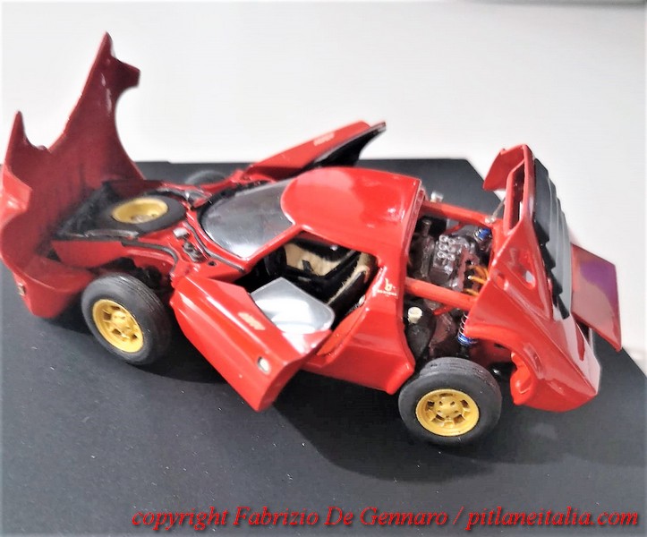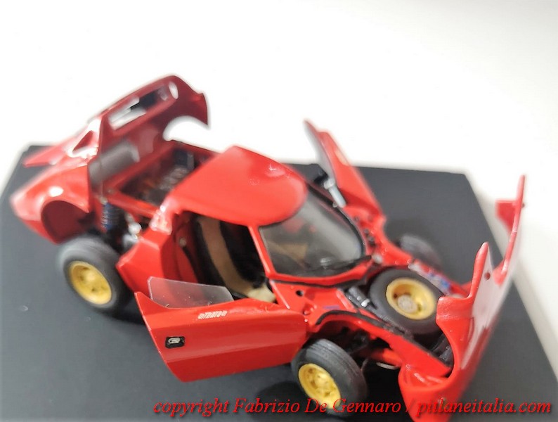 E’ stato tutt’altro che un lavoro facile, quello che Fabrizio De Gennaro ha dovuto affrontare per il montaggio di uno dei famosi kit di Yves Jacquemet, marchiati Auto Création. Si tratta di una Lancia Stratos in versione stradale, resina, scala 1:43. Come molti lettori sapranno, i kit Auto Création, molto rari, si contraddistinguono per le parti apribili e per il dettaglio della meccanica. Apparentemente tutto sembra tornare alla perfezione, ma sappiamo quali insidie modelli come questi riescano sempre a nascondere. E questa Stratos non ha smentito i timori, con pezzi che non tornavano, parti di carrozzeria recalcitranti e accoppiamenti ai limiti delle leggi della fisica. Il risultato finale è comunque davvero convincente. Alla fine si può dire che l’ha spuntata il modellista, che si è trovato spesso di fronte delle autentiche sfide. Un bravo quindi a Fabrizio, che ha saputo tirarsi fuori con rara maestria dalle sabbie mobili di questo kit. Le foto nella gallery documentano quasi l’intero montaggio. Mancano purtroppo le prime fasi, che si sono svolte prima che iniziassimo a pensare che un wip di questo modello sarebbe stato perfetto per il sito!
