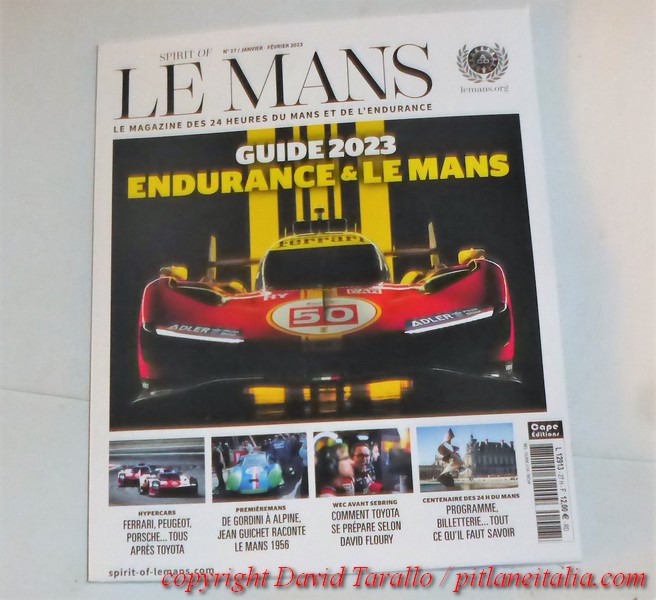Spirit of Le Mans è la rivista ufficiale della 24 Ore di Le Mans e di tutti i campionati afferenti all’Automobile Club de l’Ouest. Il fascicolo numero 27 (gennaio-febbraio 2023) presenta una guida piuttosto dettagliata della stagione che inizierà l’11-12 marzo con il prologo alla 1000 miglia di Sebring e che è destinata a fare epoca anche per il ritorno ufficiale della Ferrari, con la 499P di categoria Hypercar. Un vademecum assai utile per chi desideri procurarsi un’informazione rapida ma sicura sui protagonisti, passando anche per le LMP2 e le GT. Per quanto riguarda i contributi storici, in questo numero si parla dell’esordio a Le Mans di Jean Guichet, avvenuto nel 1956 sulla Gordini T15S insieme a Robert Manzon, e della storia dell’Ecurie Léopard, la più antica scuderia francese ancora in attività. Con le sue 82 pagine, Spirit of Le Mans è sempre una lettura gradevole e spesso istruttiva, che mischia bene il presente col passato.