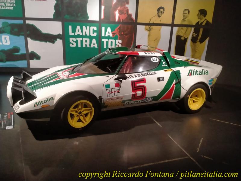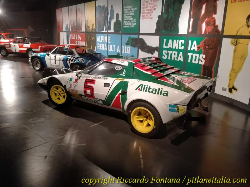 Si parte dal principio con una stupenda Mini Cooper ex-ufficiale in diretta dal 1000 Laghi 1967, proseguendo con perle come Ford Escort RS 1600 (quel nome “Roger Clark” sul passaruota… Confesso di essere rimasto un buon quarto d’ora in rimirazione, tipo l’architetto Melandri con la Madonna in Amici Miei), a Fulvia HF ex-Safari, 124 Sport Spider 1600 (sanamente opaca e conservata), Alpine A110 1800 (vincitrice del Marocco 1973 con Bernard Darniche, restaurata ma importantissima in quanto unica Alpine in alluminio mai realizzata), e poi Stratos (come prevedibile, l’unica macchina sulla cui veste attuale avrei qualcosa da obiettare, ma non fateci caso, sono malato), Delta Safari, 131 Abarth, e via discorrendo.