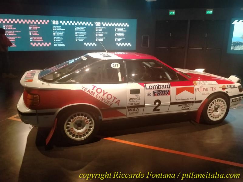 Proseguendo si incontrano le grandi rivali dell’epopea del Gruppo A, la Delta Integrale 16 V e la Celica GT-Four ST165: se la prima, qui in versione vincitrice del Sanremo 1990 con Didier Auriol, è quasi comune da incrociare in mostre e manifestazioni, la seconda, che peraltro è proprio quella che ha vinto il RAC Rally del 1990 e il Nuova Zelanda dell’anno dopo, è un’entità quasi mitologica, in cui ben raramente ci si può imbattere dal vivo.
