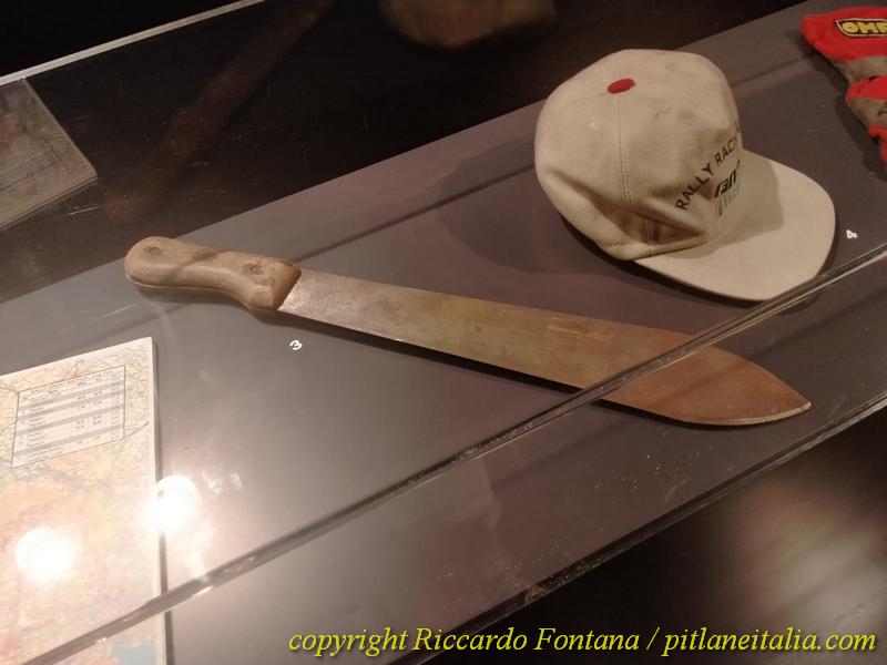 Chiudono la mostra degli ottimi pezzi di memorabilia come le tute dei più grandi specialisti, caschi, e oggetti vari riconducibili alla grande storia dei Rally: particolarmente impressionante è un machete in dotazione agli equipaggi Martini Racing al Safari 1992, e più che alla boscaglia ed allo stato di necessità, per chi sa ed è “scafato”, il pensiero non può che correre alla rapina subita da Piero Sodano ad opera di un gruppetto di Masai nell’edizione 1977. La mostra rimarrà visitabile fino a maggio, ed è certamente di quelle da non farsi scappare, anche perché si può comunque godere degli altri pezzi esposti permanentemente al Museo, che sono, in verità, sempre un bel vedere.