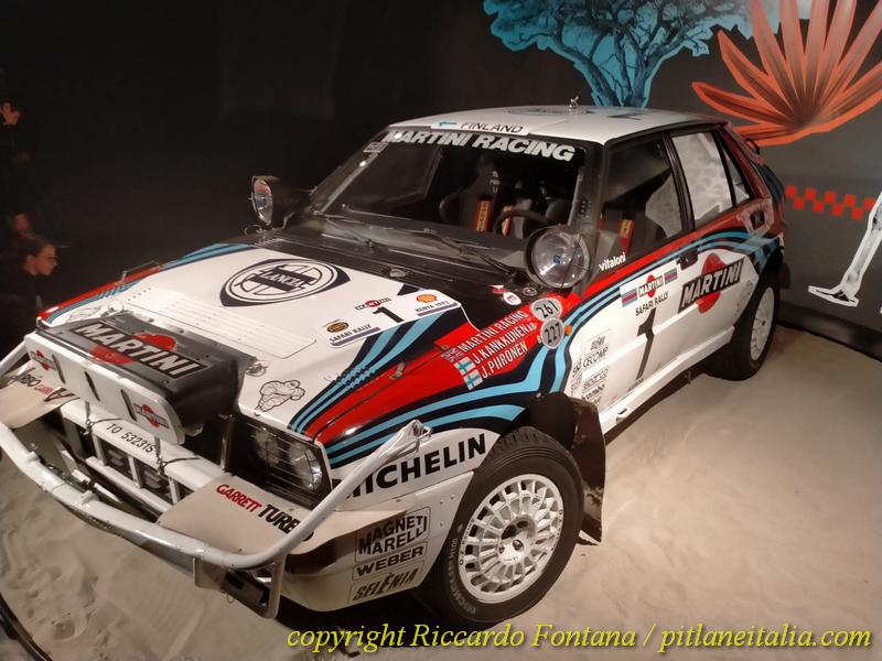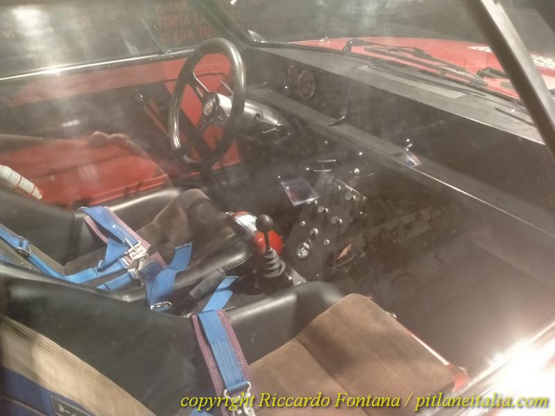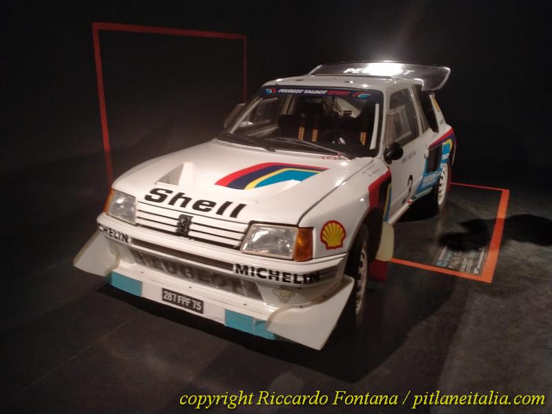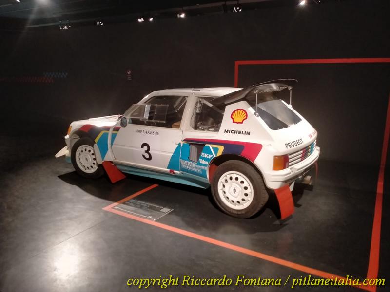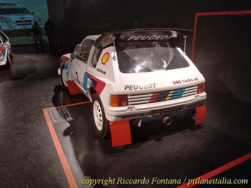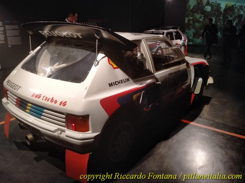 Veramente non si sa dove girare la testa, le auto compaiono ovunque, e si è circondati da entità motoristiche che, se come me si è nati “tardi”, si sono viste solo sui libri o sui vecchi numeri di Rombo e di Autosprint: in un angolo c’è la Renault 5 Turbo di Jean Ragnotti prima al Montecarlo 1981, ed è proprio lei, esattamente lei, non una 5 Turbo con la livrea del Monte, ed è sbalorditivo ammirarla, con quegli interni rossi e blu presi dalla produzione di “serie”, neanche fosse una Gruppo 1 o una più tardiva Gruppo N, e poi ci s’imbatte nella 205 Turbo 16 Evo 2 del 1000 Laghi 1986, ancora dotata delle famigerate “minigonne” della discordia del Sanremo: impossibile, se si è ragazzi cresciuti a pane e “I Grandi Rally degli Anni ’80”, non sdraiarsi per terra e guardarla sotto, e magari fare anche delle foto, minacciato da un tubo di scarico che ricorda più un cannone da 88 di un Carro Tigre che una marmitta automobilistica.