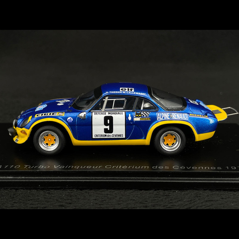 Di recente Spark ha immesso sul mercato l’Alpine A110 Turbo nella versione vincitrice dell’edizione 1972 del famoso Criterium des Cévennes. Il modello è in resina e, seguendo le logiche industriali del marchio, probabilmente si è partiti utilizzando come base la versione stradale della Alpine A110 già in catalogo dalla collegata MiléziM, con base in Madagascar, ovviamente opportunamente modificata.