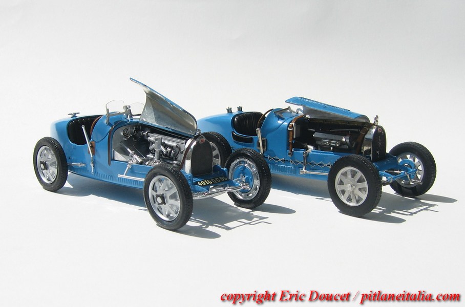 Presentiamo alcuni modelli di Eric Doucet, un modellista di cui PLIT ha già pubblicato altri lavori. Stavolta il tema prescelto è la Bugatti. Nelle foto della gallery, alcuni montaggi da kit Monogram, Matchbox e Airfix 1:24 e 1:32, nonché modelli speciali CG Models di Christian Gouel. Il diorama è un Miniart, cui Doucet ha aggiunto delle ruote a raggi Le Mans Miniatures, marca cui si deve anche il figurino. I diecast Solido 1:43 sono stati infine trovati in qualche mercatino per pochi euro. Troviamo infine una T57 di Looksmart, ormai fuori produzione. Affascinante il colpo d’occhio generale, no?