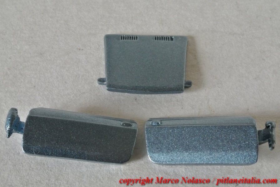 Purtroppo, quando a casa gettai il modello nel solvente, non feci caso ai fari posteriori che non erano verniciati, ma in plastica riportai… beh… non gradirono il solvente e pensarono bene di sciogliersi per rappresaglia, quindi dovetti ricostruirli.