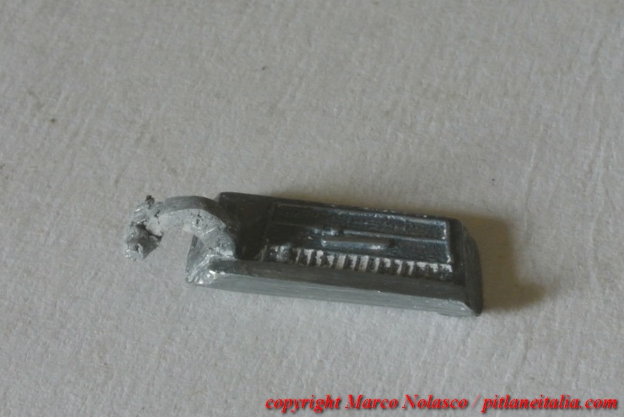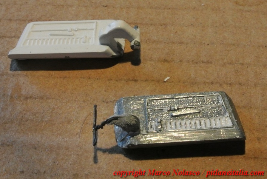 4-ho inserimento il tutto nelle asole di scocca e pianale del modellino, a stucco non ancora indurito, per ottenere la forma atta a permettere la rotazione della cerniera e la conseguente apertura della portiera