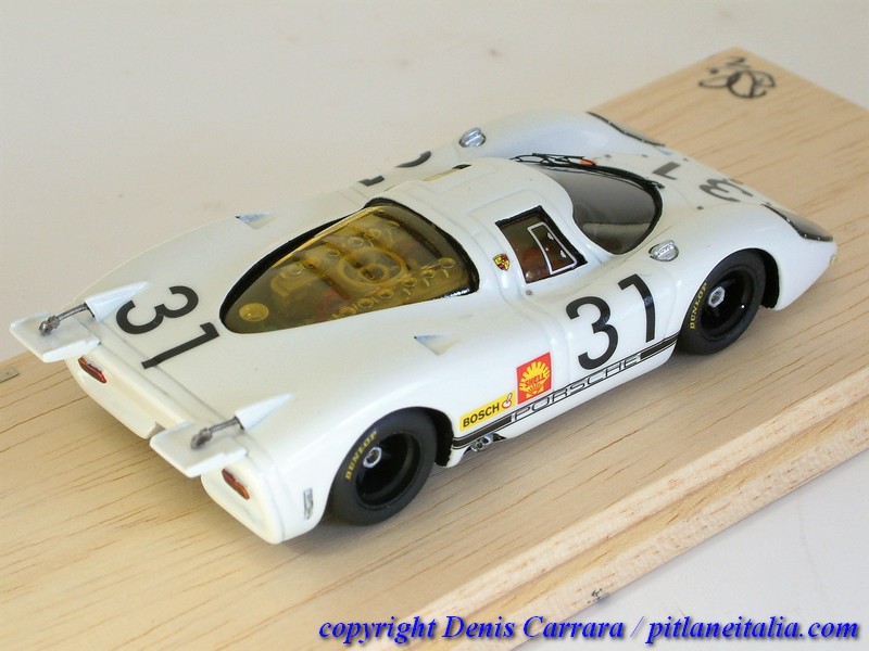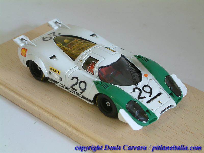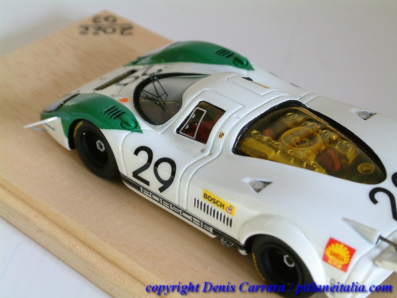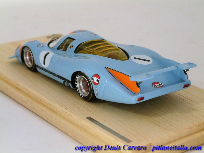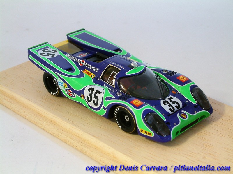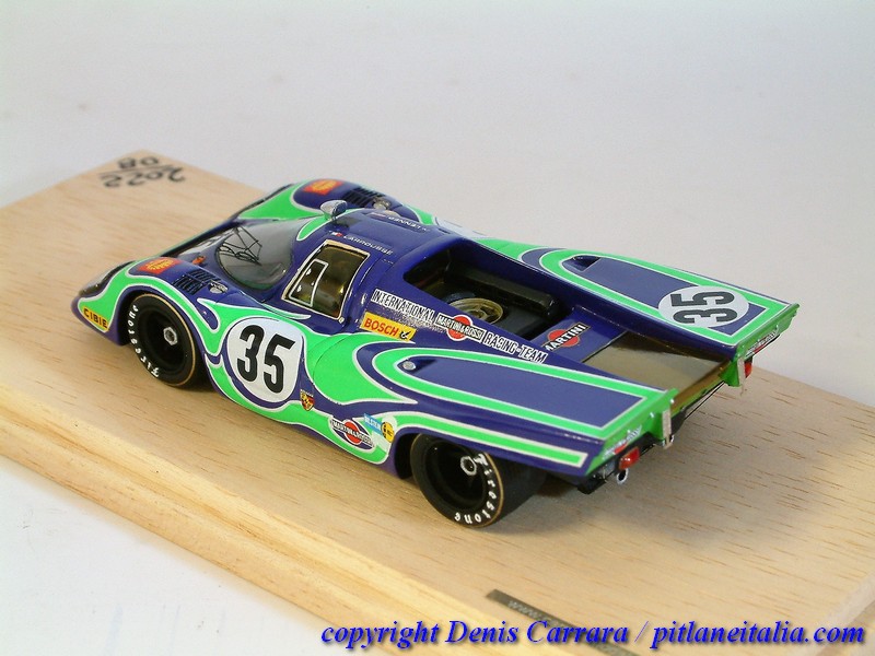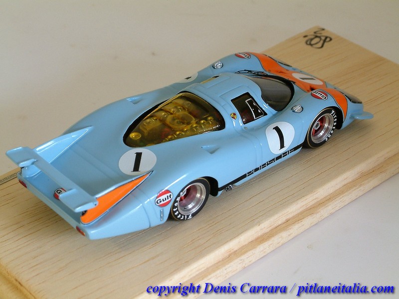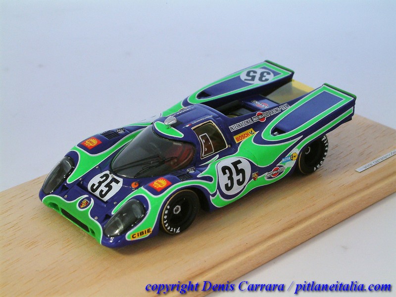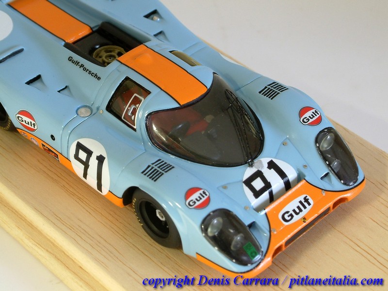Le Porsche 917 sembrano tutte uguali tra loro e invece nascondono non poche insidie per chi voglia avvicinarsi alla fedeltà storica. Grande cura è stata riservata alle simmetrie, agli assetti e a vari adattamenti per impedire alcuni antiestetici effetti come indesiderati passaggi di luce attraverso varie parti, che inizialmente non chiudevano perfettamente. Da notare la verniciatura in giallo trasparente di alcune superfici vetrate che lo richiedevano (vetri laterali e posteriori), cosa spesso trascurata da modellisti e case di produzione.