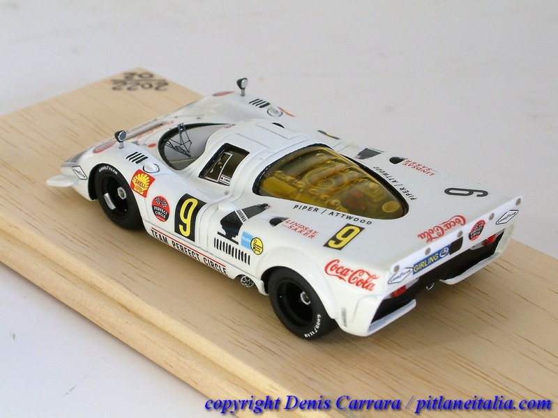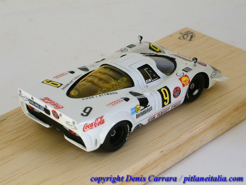 In questa pagine vi proponiamo una corposa gallery dei lavori di assemblaggio e dei risultati finali. In totale sono otto modelli per sette versioni: 1000km di Zeltweg 1969 #29 Siffert/Ahrens, 1000km di Spa 1969 #31 Mitter/Schütz, 9h Kyalami 1969 #9 Piper/Attwood, 6h Watkins Glen #35 Larrousse/Van Lennep, Can-Am Watkins Glen 1971 #91 Attwood, Gulf Presentazione 1969 e Prove Le Mans 1969 #46. I modelli hanno già raggiunto da giorni le case dei loro proprietari, che siamo sicuri che siano stati più che felici di aggiungere alla collezione dei pezzi che hanno richiesto parecchie ore supplementari di lavoro rispetto ad un montaggio standard.