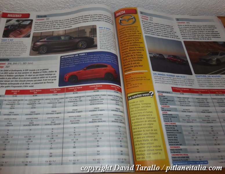 Addentrandoci più sulla produzione attuale, per ogni costruttore vengono forniti alcuni ragguagli sulle tendenze di vendita e sulla storia societaria. Cosa alquanto utile, per ogni modello sono riportati gli anni di presentazione e quelli dei vari restyling. Davvero un lavoro certosino, che sarà benedetto soprattutto da chi ha poco tempo e necessita di un efficace strumento di consultazione per redigere schede o brevi articoli senza impazzire nei siti ufficiali delle case che non sempre forniscono tutto ciò di cui un giornalista, un blogger o magari anche un modellista hanno bisogno. Il prezzo di questo hors-série in Francia è di € 6,99 (€ 7,50 in Italia). Se lo trovate prendetelo: in Italia pubblicazioni di questo tipo mancano completamente: ci si avvicina un po’ Al Volante ma senza la ricchezza dei contenuti che trovate in questi quaderni d’oltralpe.