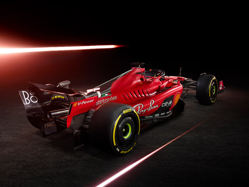 Livrea speciale. La SF-23 ha una livrea che presenta diversi inserti in carbonio, il logo con la “Effe lunga” sull’ala posteriore e un colore rosso tutto nuovo, che è stato creato da Ferrari Design per entrambe le vetture ufficiali che saranno impegnate in un campionato del mondo. Sulla vettura di Formula 1 sarà in versione opaca, mentre sarà lucido sulla 499P, la Hypercar impegnata nelle competizioni endurance.