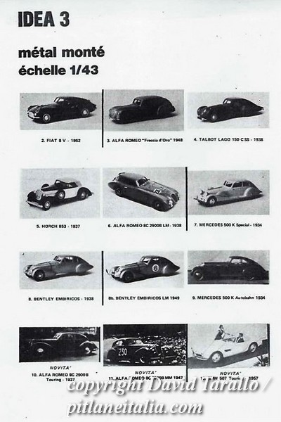 La produzione degli speciali Idea3 continuò fino al 1981, con 24 referenze nella serie principale (le ultime tre, in resina, stampate da Brianza) e con tre modelli nella serie B&B, dedicata a soggetti poco usuali: una Adler Trumpf Cabriolet del 1937, una Fiat 16/24HP tipo corsa 1903 (elaborazione su base Rio) e una Cisitalia 202 Cabriolet del 1948. La gamma Idea3 era invece incentrata su vetture sport e GT anni trenta-quaranta-cinquanta, soprattutto Ferrari e Alfa Romeo ma non mancavano marchi stranieri come Horch, Talbot-Lago, Mercedes e appunto Bentley.