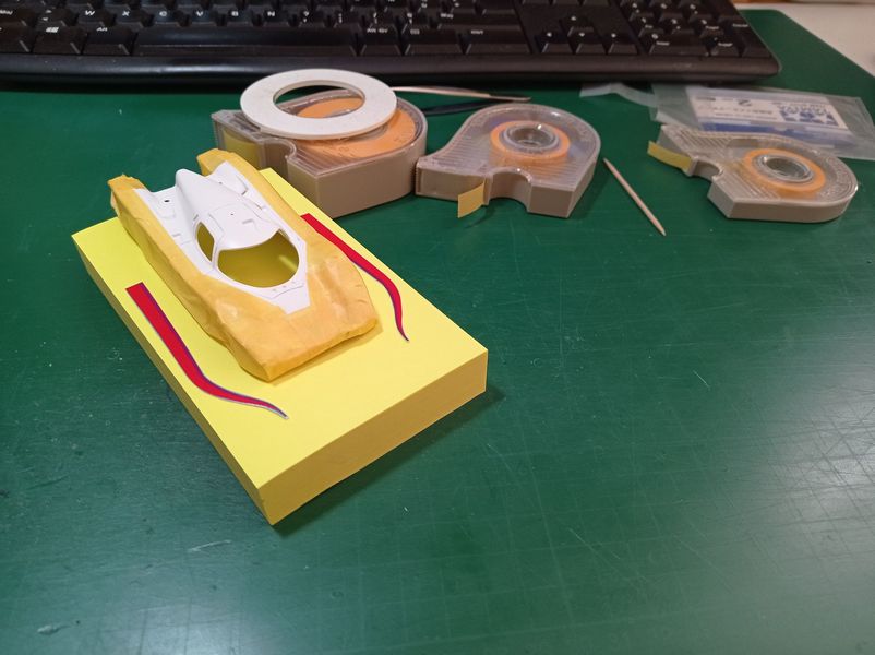 “Sono stati poi impiegati – prosegue Thierry nella sua descrizione – nuovi pneumatici e una serie di piccole parti mutuate dalla gamma Renaissance. Nuove le decalcomanie, realizzate da un amico francese. C’è stato poi parecchio lavoro di mascheratura per la verniciatura, fatta con bombolette Tamiya”.