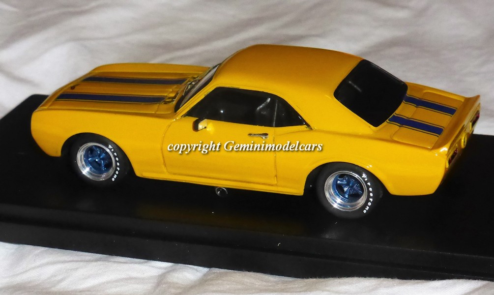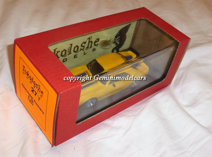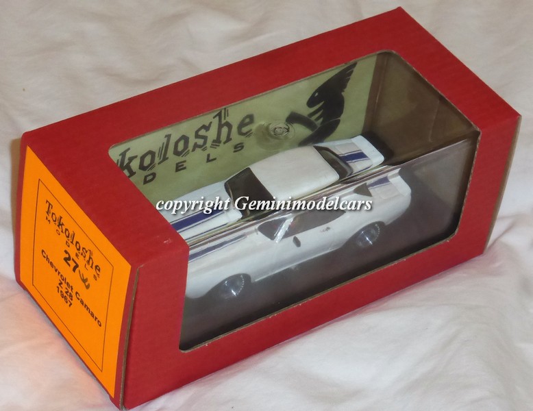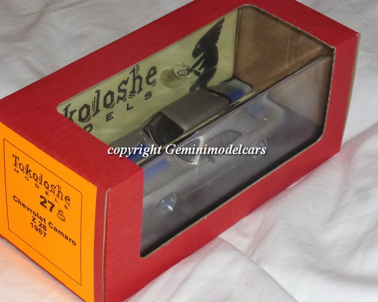 Avevamo già annunciato l’imminente uscita del nuovo modello Tokoloshe. Si tratta della Chevrolet Camaro Z28 1967 in una versione un po’ tuning, un po’ racing. Il modello è disponibile per ora in tre colori: bianco (TOK27W), giallo (TOK27Y) e argento (TOK27S). Tutte le versioni hanno strisce blu e cerchi (in alluminio tornito, non in plastica o resina) con gli interni dello stesso colore. Come nella tradizione Tokoloshe, il prezzo è particolarmente ridotto: € 59,95. Fra le caratteristiche del modello troviamo tergicristalli fotoincisi, fari ottici, verniciatura di ottimo livello. La scatola richiama la produzione storica Tokoloshe, ma al posto della vetrina-base di derivazione Progetto K troviamo una base più grande Remember. Le Camaro Tokoloshe sono disponibili a questo link: https://www.geminimodelcars.com/shop/21889459/143-scale-models