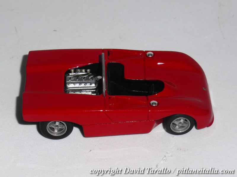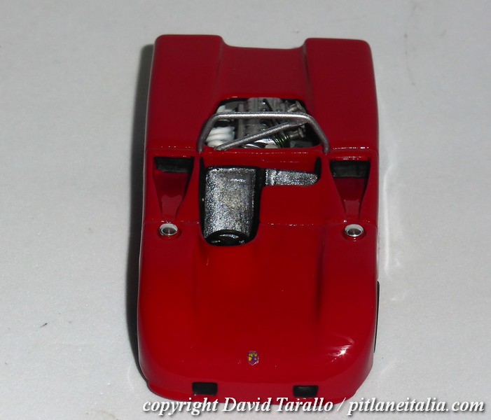 Il modello è stato volutamente montato senza tutti quei particolari come cinture di sicurezza, leva del cambio, estintore o strumentazione che non sarebbero stati realistici in quello che tutto sommato resta una specie di rendering sospeso fra storia e leggenda. Il motore, a vista, è stato completato con tromboncini in alluminio e cavetti.