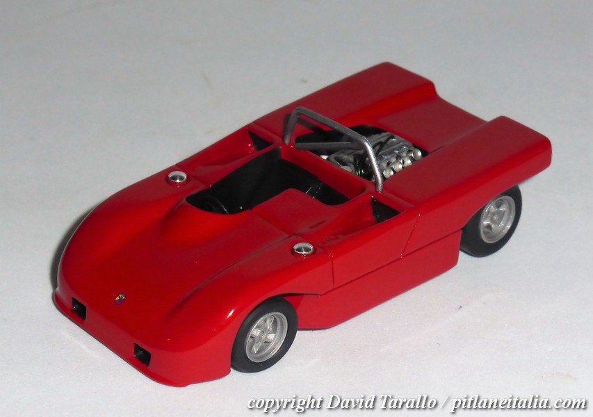 Remember ha ripreso un vecchio e semisconosciuto kit di Total Model per realizzare una serie montata di questa Abarth 2000 molto particolare. Il modello d’origine era di per sé molto semplice: carrozzeria in resina, fondino e gruppo motore-cambio in corpo unico, anch’essi in resina, e pochi altri elementi in metallo bianco, come bracci delle sospensioni, tiranti, mozzi, scarico, ammortizzatori, rollbar, cerchi. La verniciatura è uno dei maggiori pregi di questa miniatura. Come da tradizione Remember, è ben uniforme, lucida il giusto e coprente.