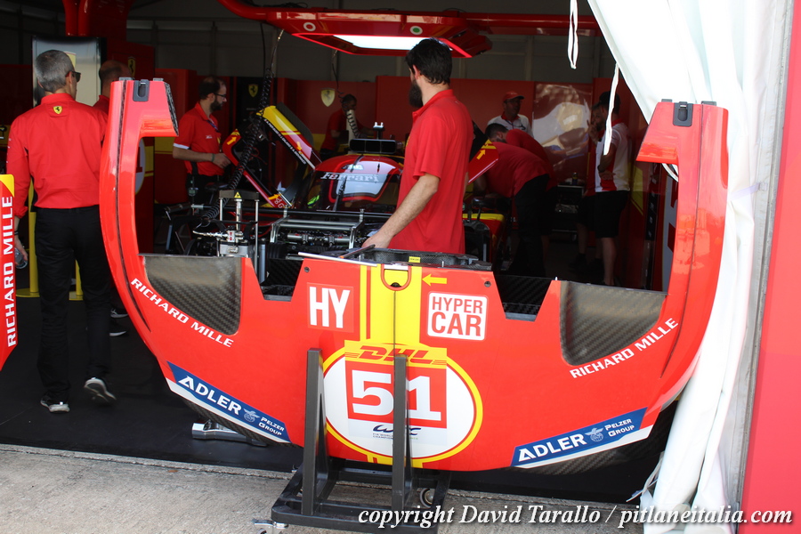 Si diffondono le prime immagini di particolari tecnici delle nuove vetture del FIA-WEC. Oggi pomeriggio ci siamo fatti due passi nel paddock (sistemato come l’anno scorso lungo l’Ullman Straight. In particolare siamo riusciti a cogliere diversi dettagli del fondo e della carrozzeria della Porsche 963 e alcune viste dei pannelli anteriori e posteriori della Ferrari 499P.