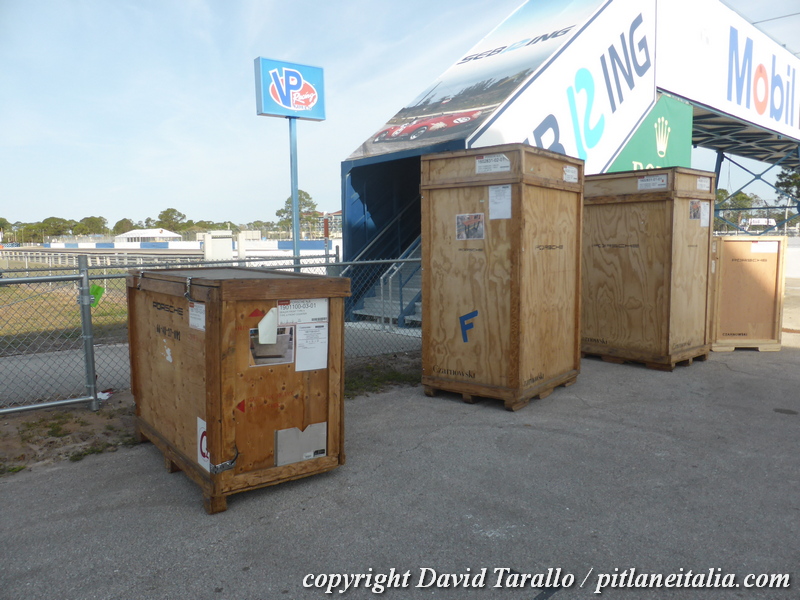 Inizia domani la lunga settimana di Sebring, che culminerà nel weekend successivo con la 1000 Miles del venerdì e la 12 Ore del sabato. Oggi è giornata di preparativi, ma gli spazi nel paddock riservati ai concorrenti del FIA-WEC e dell’IMSA sono già pronti. E’ stata l’occasione per dare un’occhiata alle vetture ancora smontate nei garage. Nelle prossime ore pubblicheremo una gallery dedicata ai concorrenti del FIA-WEC, con l’esordio di Porsche, Cadillac (che si sono già viste nell’IMSA a Daytona), Ferrari e Vanwall.