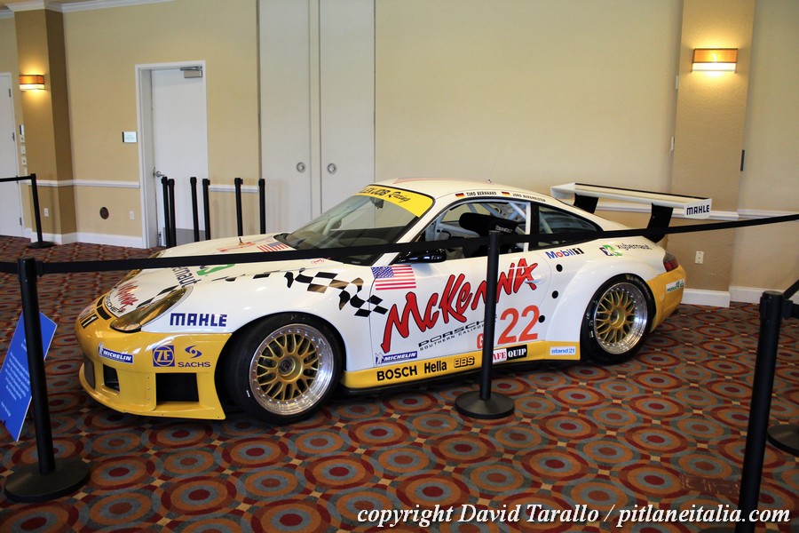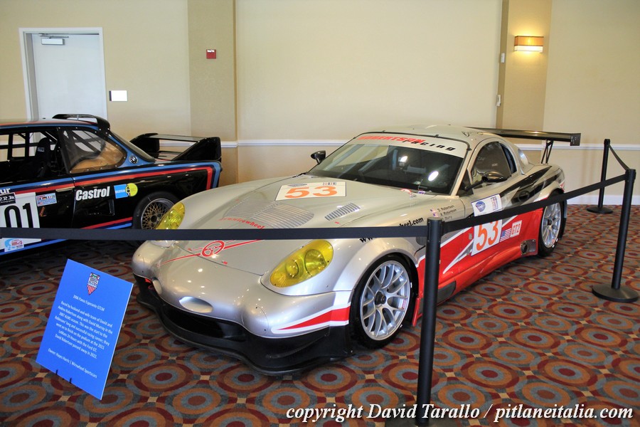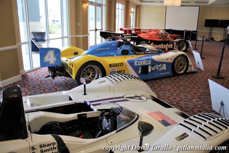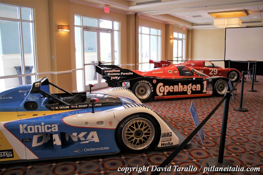 Occupati temporaneamente dalla sala stampa gli spazi che le sono di norma riservati, la Gallery of Legends è visibile nel salone da ballo dell’Hotel Elan. Presenti non molte vetture, ma sicuramente affascinanti, come una Porsche 962, una March 85G un paio di Riley&Scott, una Panoz e così via. Il brutto è quando certe macchine le hai viste correre e non ti sembra neanche che sia passato tutto ‘sto tempo.
