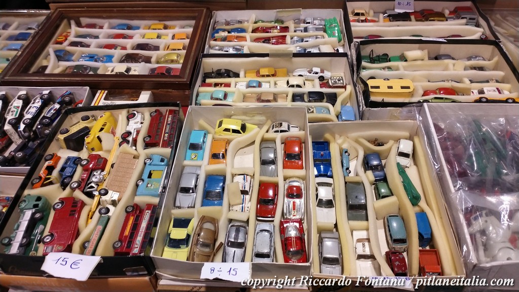 Domenica a Cremona c’era letteralmente il mondo, tanto da non fare avvertire come troppo greve il divario con l’appuntamento dicembrino di Novegro, da sempre lo zenith annuale di questi avvenimenti per bellezza ed eccezionalità dei banchi: si andava dagli obsoleti “canonici” di assoluto pregio, come Mebetoys e affini, a giocattoli d’epoca di ottimo livello (bellissima un’Alfa Romeo 33.2 Daytona in scala 1:8 di cui non sono stato – ahimè – in grado di riconoscere la paternità), ad un sacco di curiosità e stranezze che facevano assomigliare la fiera ad un grande numero in 3D del vecchio Passion 43ème: particolarmente degne di nota una Simca 5 Dinky Toys d’anteguerra, una bellissima Alfa 2500 6C Tekno con tanto di scatoletta, e un bell’assortimento di kit Merit in scala 1:24, che era possibile reperire sia montati in buone condizioni che ancora da costruire (in due banchi separati).