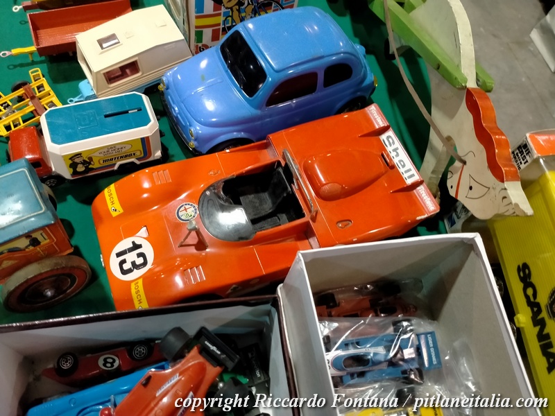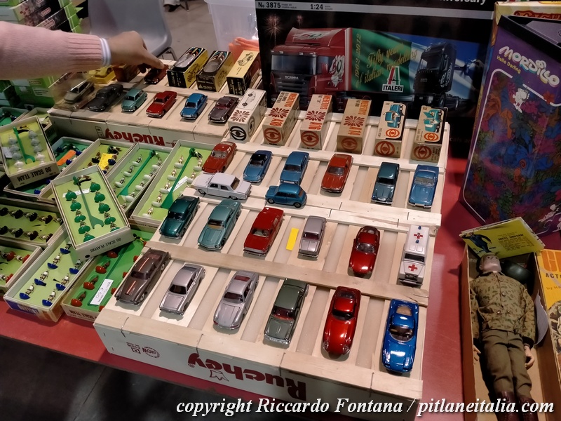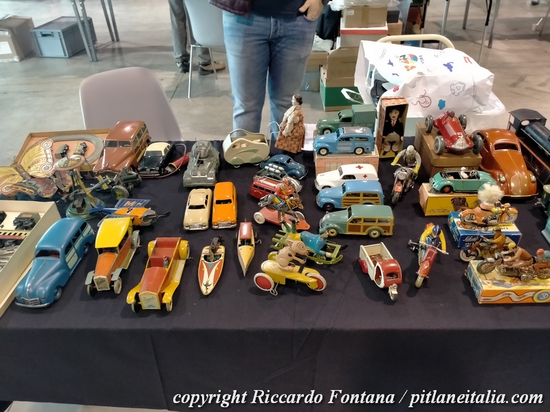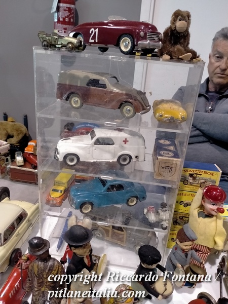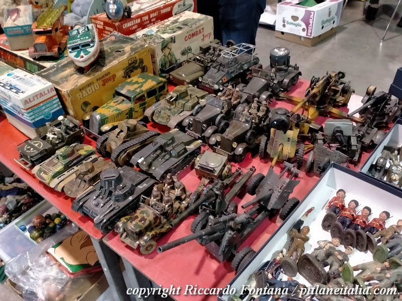 Un banco verso l’ingresso esponeva una incredibile raccolta di giocattoli militari meccanici Arnold e TippCo, in condizioni strepitose, cose assai difficili da incontrare pur frequentando le migliori borse, così come una completa selezione di Fiat Topolino MLB, presenti al gran completo in due differenti banchi.