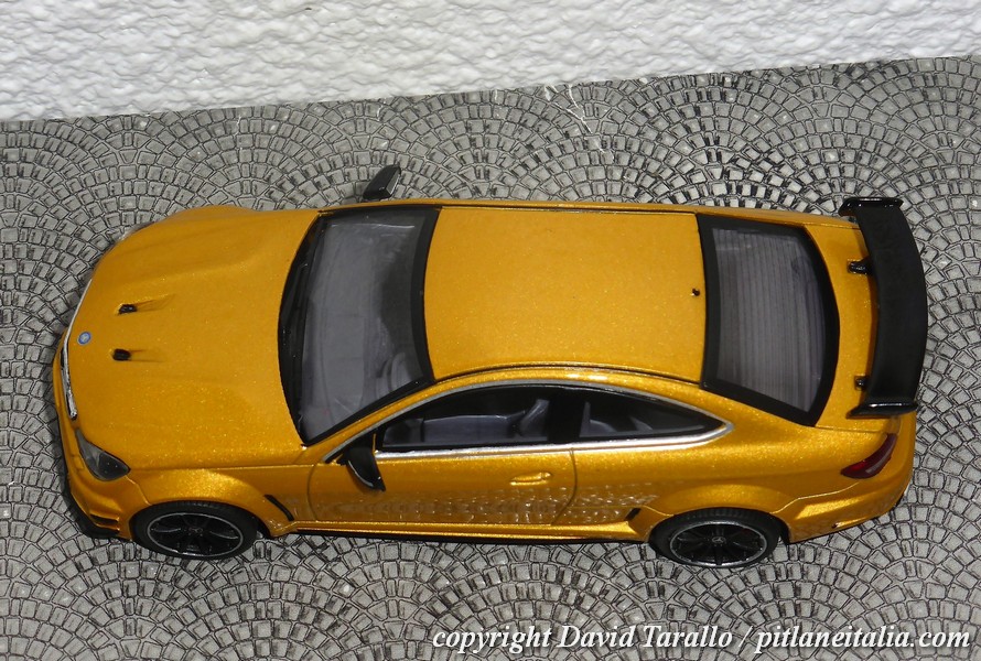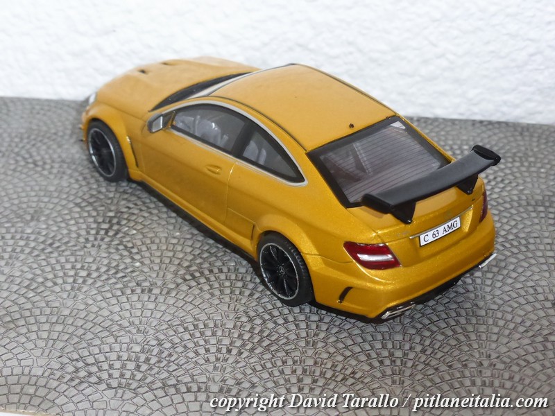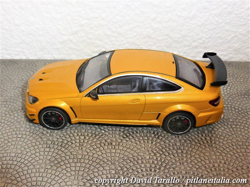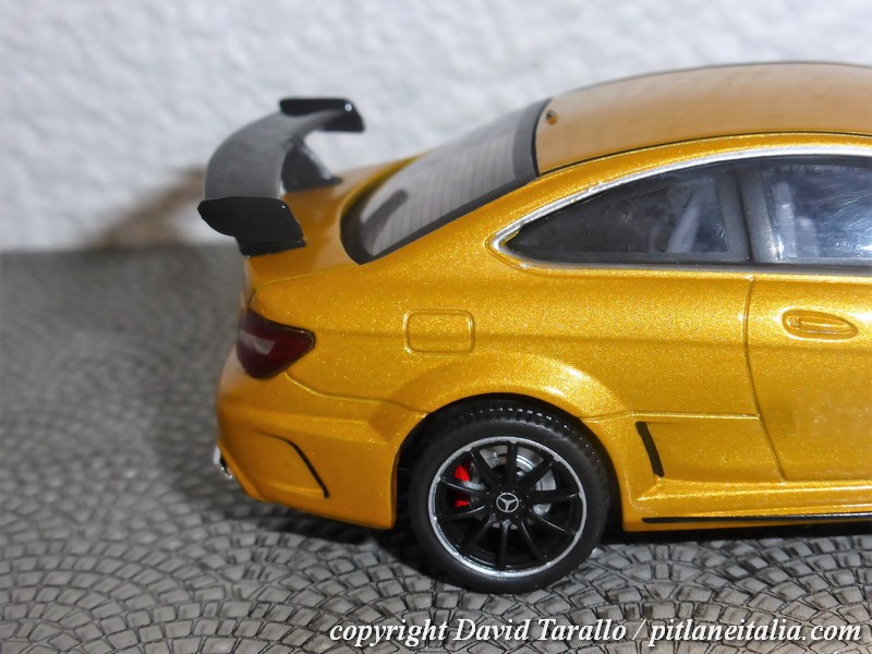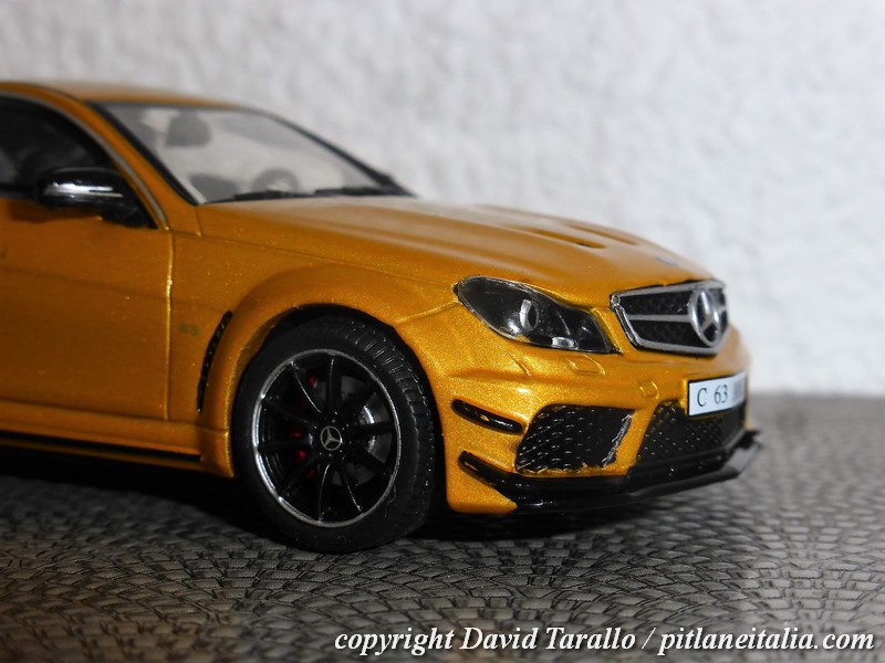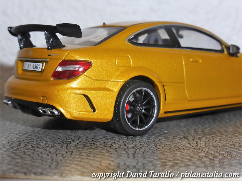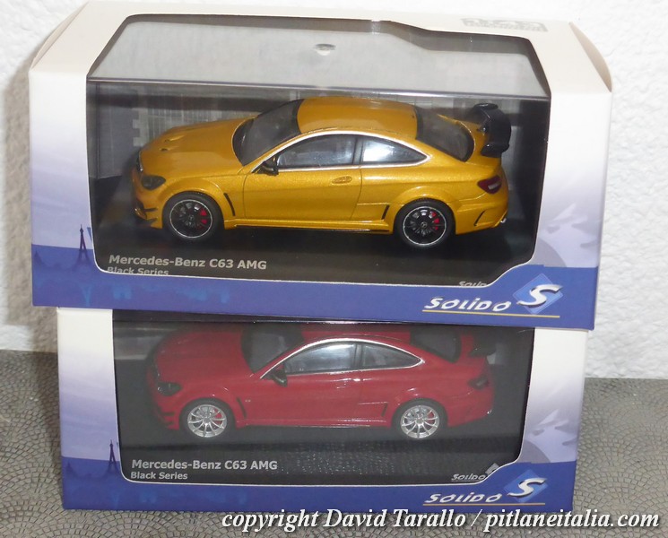 Solido ha riprodotto la C63 AMG Black Series nella gamma diecast 1:43, prevendendo due scelte di colore, come ormai di costume su ogni novità: rosso (S4311602) e giallo-oro metallizzato (S4311601), entrambe con interni grigi.