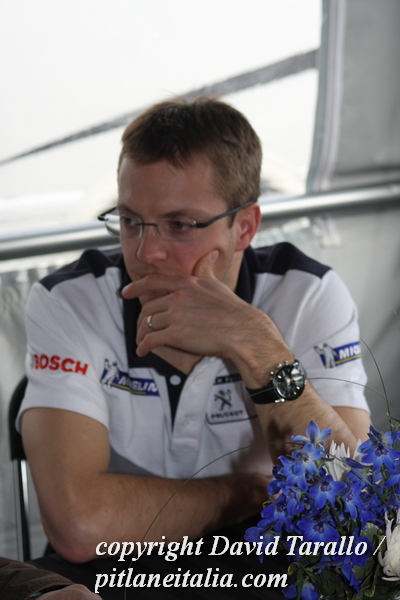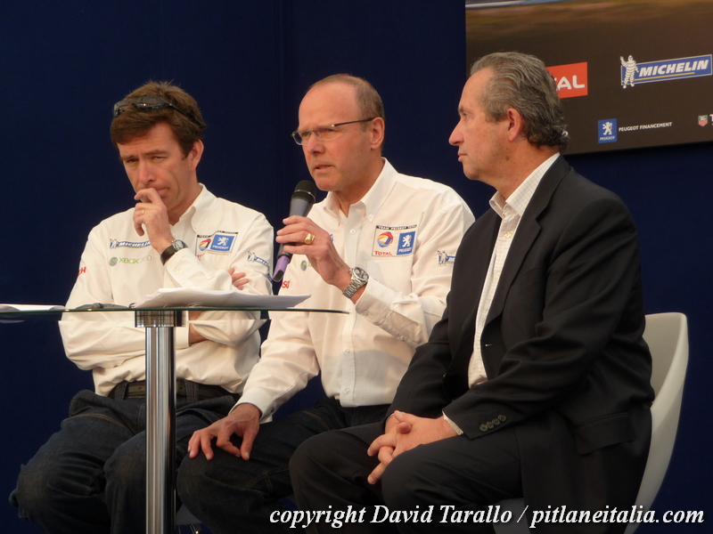 Le Mans 2011: sembra l’anno buono per il secondo successo della 908 dopo quello del 2009 ma le cose sono destinate ad andare diversamente. Nella foto, Bourdais parla nel corso della conferenza stampa del venerdì