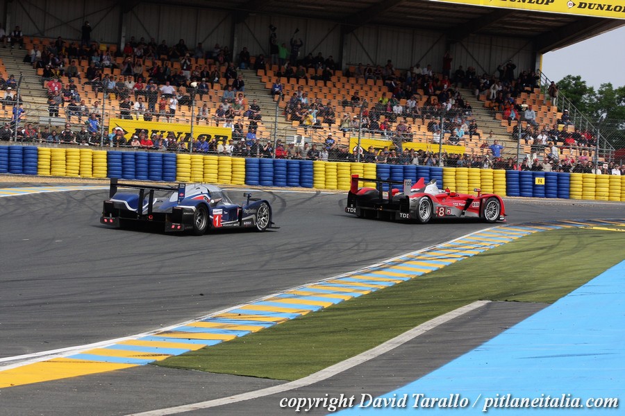 Ma l’Audi R18 cresce bene e a Le Mans tedeschi e francesi se la giocano alla pari. E’ la più spettacolare edizione degli ultimi 10 anni, senza un attimo di respiro. L’Audi perde due vetture su tre, ma l’unica R18 superstite riesce a tenere in scacco la muta delle 908 inseguitrici per interminabili ore. Finisce con uno scarto degno di un Gran Premio di Formula 1 e per la Peugeot è un’altra beffa. Certo, stavolta è un risultato che tecnicamente vale quanto una vittoria, ma è davvero una magra consolazione. Affidabilità impeccabile, prestazioni eccezionali, nessun errore da parte dei piloti. La partita si decide sul filo dei rifornimenti, sul filo dei secondi. E forse sotto questo aspetto l’Audi è quella che sfrutta al meglio tutte le situazioni. Il rospo è duro da ingoiare.